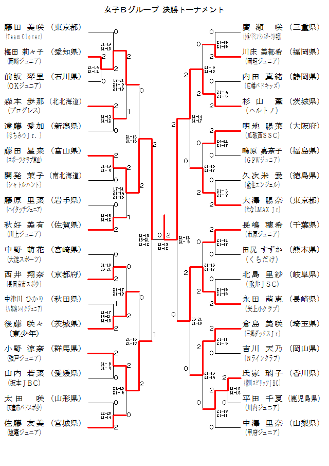 | 大澤 陽奈 (たなしMAX Jr) | ○ 21- 5 21- 4 | ○ 23-21 21-19 | 1 |