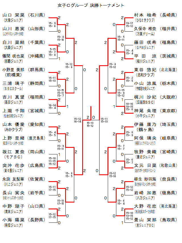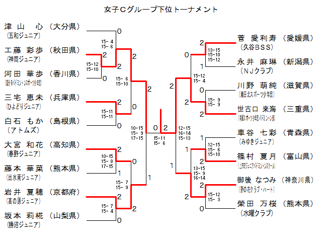 | 大宮 和花 (春野ジュニア) | × 1-15 1-15 | × 15- 9 10-15 3-15 | 3 | |