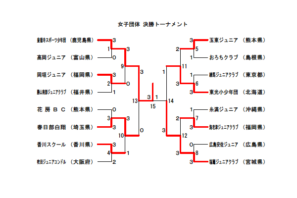 女子団体 Mブロック | 糸満ジュニア | 長岡京市スポーツ少年団 | 串川育成会 | 順位 |